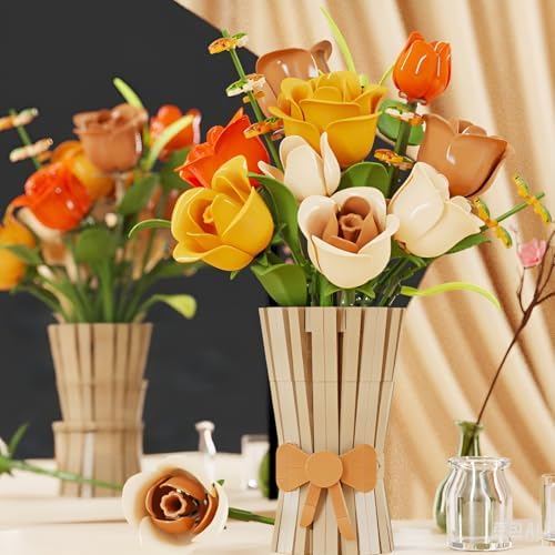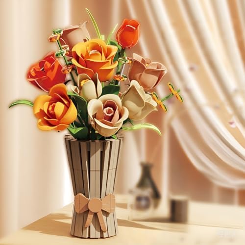 Elegant Rose Bouquets Collection: Made of harmless ABS plastic recycled resource with vivid colors, our rose flower bouquet is the classic set with a combination of beauty and functionality, compatible with standard bricks